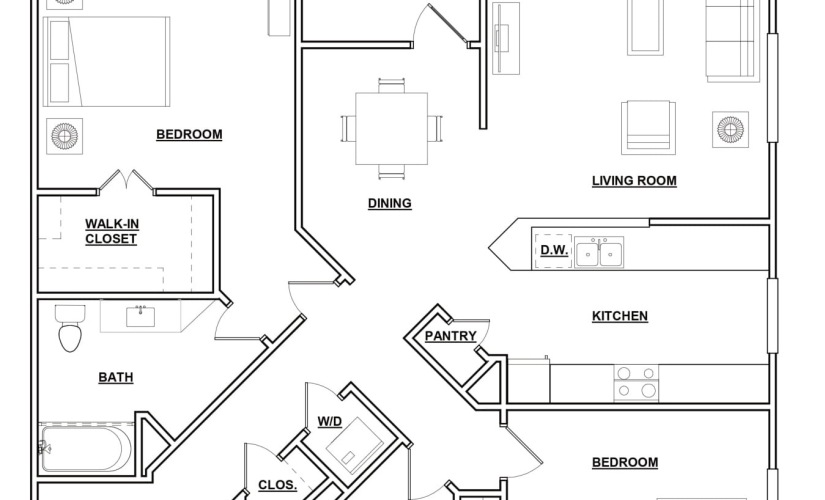 2 BR, 2 BA - 1,102 SF